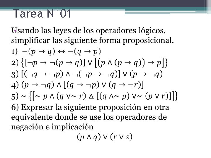 •Definición Dos formas proposicionales P y Q se dicen lógicamente equivalentes, y se escribe P ≡ Q, si sus tablas de verdad coinciden Nota Esto equivale a decir que P ↔ Q es una tautología;Para multiplicar dos polinomios se aplica la propiedad Distributiva, efectuando luego la multiplicación de los monomios y utilizando la propiedad de la potenciación Ejemplo Dados P(x) = 2x 2 – 5x 2 y Q(x) = 3x 2 x Realizar P(x)